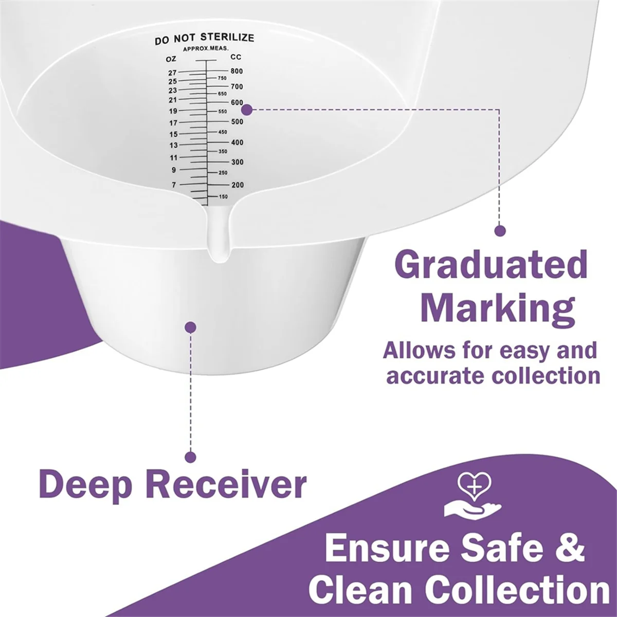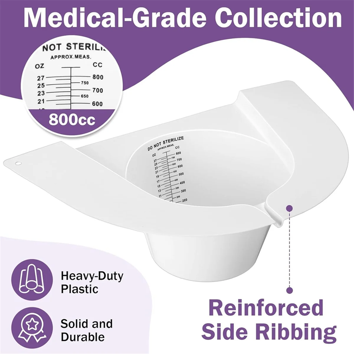 Ergonomic and Convenient Pour Spout Design: these urine collection containers feature winged edges that fit properly around the rim of the toilet bowl, help you to collect urine and feces easily; These urine hats come with a convenient pour spout, promoting ease of transferring urine samples without spills.